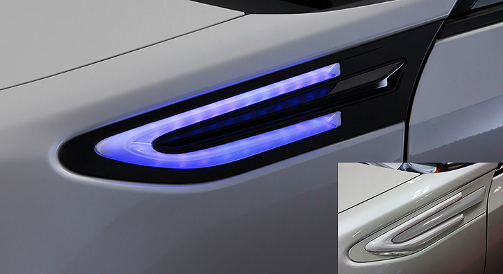 随所にLEDパーツを使って夜間のワンポイントドレスアップとして人気のLEDエンブレムや、ハイグレード感を出すLEDミラーウインカーなど特価販売。
