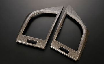 REVIER(レヴィーア)40アルファード用インテリアパネル。サテンシルバーと鶉杢ウッドの2カラー。両面テープで貼り付けるだけで高級感を与えるサイドエアコンダクトパネル。