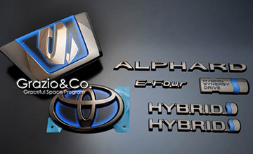 随所にLEDパーツを使って夜間のワンポイントドレスアップとして人気のLEDエンブレムや、高級感を出す定番のクロームメッキパーツなど特価販売。