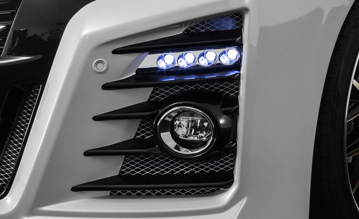 デイライトとしての機能に加え、減光、機能を搭載した2WAY多機能デイライトクリスタルレンズとオリジナルカットを施したインナーリフレクタで輝きのある光を放ちます。