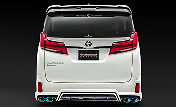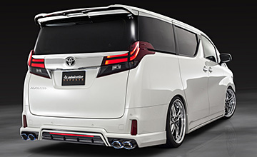 美しく洗練されたスタイリッシュなデザインのadmiration(アドミレイション)のエアロパーツ。後方へのサイズアップによりハーフでは決して得られないボリューム感をプラス。マフラー部周囲まで立体的な流麗な造形美で高級感を演出。30アルファード用リアバンパー。
