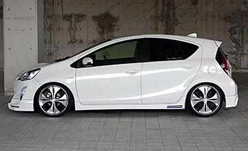サイドビューの接地感を低くするエアロパーツ、サイドステップ。ボディ全体をエアロで仕上げるには最終的に必要を感じます。もちろん左右セットの10系アクア用エアロパーツを特価販売 P10アクア用サイドステップ販売中!