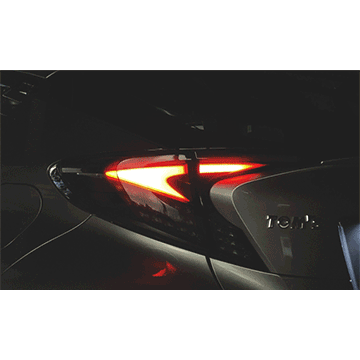 リアビューをハイグレードに一新する純正交換装着のC-HR用ライトバータイプLEDリフレクター。L字型のライトバー発光と、ブレーキ時の全体発光によって今までにないリアビューを演出。