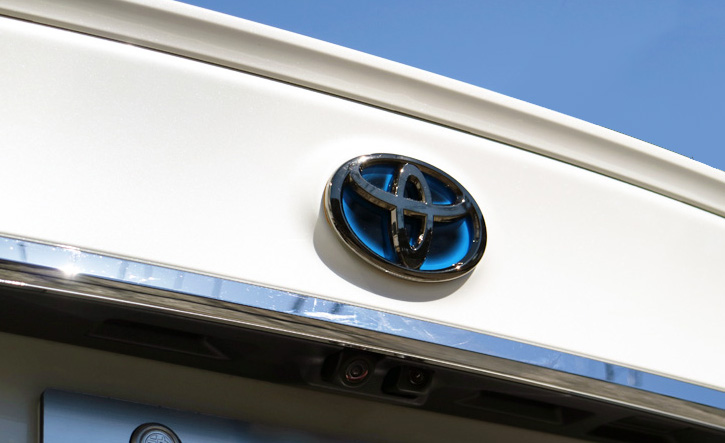 ハイブリッド車においては、その環境性能をイメージする ”ブルー意匠” が採用されておりますが、王冠の背景をソリッドな単色のブラックとすることで、