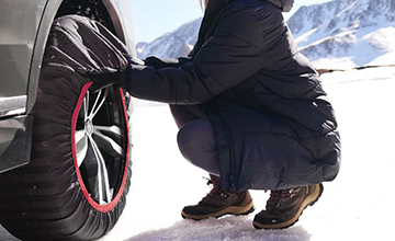 時速40kmを超えての走行や、タイヤサイズに合わないスノーソックスの装着はずれの原因となり大変危険です。装着中は制限速度を守って下さい。