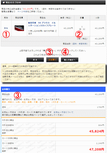 商品ページで選択された 配送地域とお支払い方法に基づく送料が加算されたお見積りとなります。