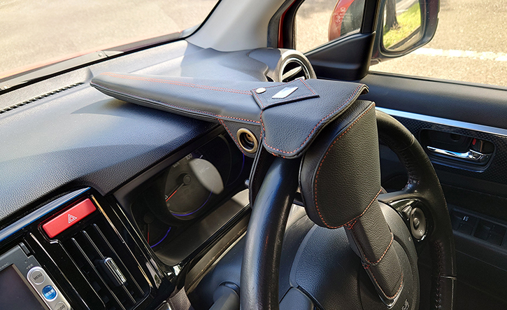 ステアリング位置によってガラス・メーター・ダッシュボードに干渉する場合があります。その場合、ステアリングロック使用時はステアリングの位置を調整してください。