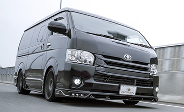 旧トミーカイラのエアロをサポートしてアグレッシブなスタイルに磨きをかけたROWEN(ローウェン)のエアロパーツ。200ハイエース4型以降ワイドボディ用エアロを特価販売。