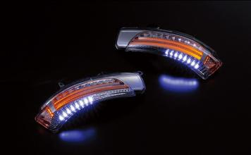 随所にLEDパーツを使って夜間のワンポイントドレスアップとして人気のLEDエンブレムや、ハイグレード感を出すLEDミラーウインカーなど特価販売。