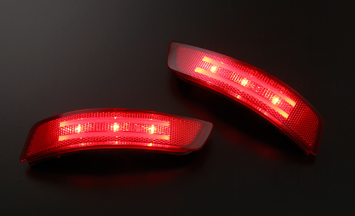 随所にLEDパーツを使って夜間のワンポイントドレスアップとして人気のLEDエンブレムや、ハイグレード感を出すLEDミラーウインカーなど特価販売。