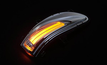 随所にLEDパーツを使って夜間のワンポイントドレスアップとして人気のLEDエンブレムや、ハイグレード感を出すLEDミラーウインカーなど特価販売。