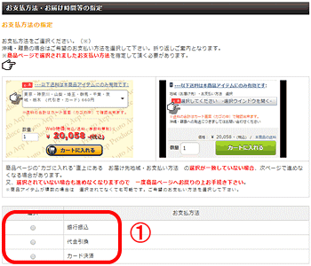 商品ページでカートに入れる際に選択したお支払い方法を選択してください。