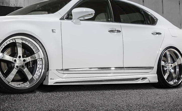 サイドビューの接地感を低くするエアロパーツ、サイドステップ。ボディ全体をエアロで仕上げるには最終的に必要を感じます。もちろん左右セットのF40系レクサスLS用エアロパーツを特価販売 F40レクサスLS用サイドステップ販売中!