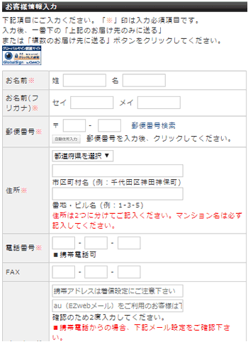 商品のご注文方法4-b(会員登録された場合のお届け先指定画面)
