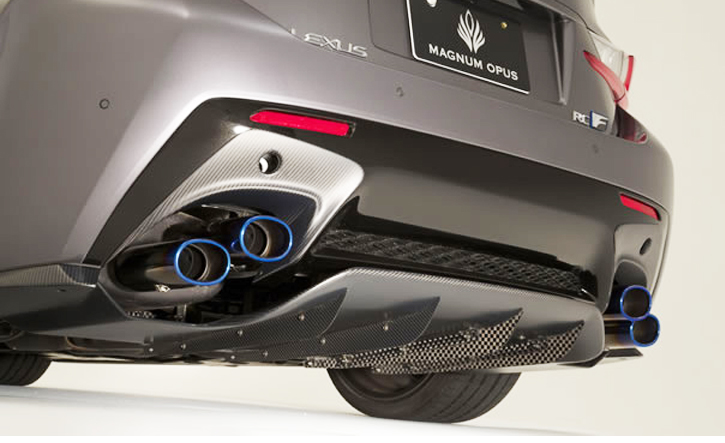 ストリートからサーキットまでこなせるエアロパーツを製作販売するVARIS。独自のセミドライカーボンによってスポーツ走行の為の実用性が高いデザインを与えるレクサスRC F用リアディフューザー。