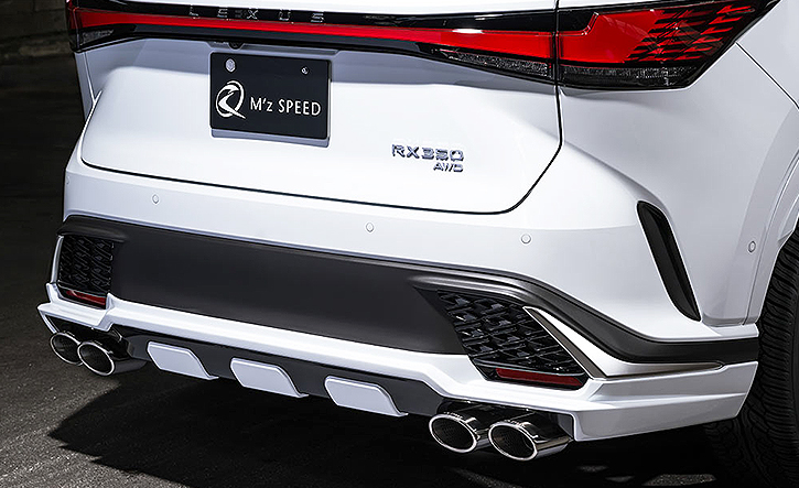 スクエア基調のデザインによりSUVらしさを強調するM'z SPEED(エムズスピード)のエアロパーツ。M'zスピード・エクスクルーシブゼウス10系レクサスRX350/RX500h Fスポーツ用エアロを特価販売。