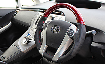 純正ステアリング形状交換タイプのステアリング。ウッドタイプやカーボンタイプなどエアバッグをそのままにハンドルをカスタムすることが可能です。インテリアパネルなどの内装色に合わせてドレスアップ。