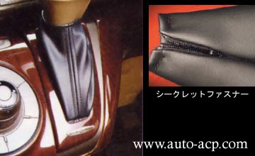メルセデスベンツにも採用されているセンターWステッチデザインのシフトブーツ。装着ファスナーも見えないシークレットファスナー式。両面テープで貼るだけの無加工装着。 |