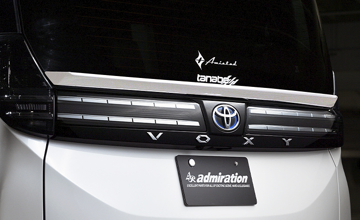 美しく洗練されたスタイリッシュなデザインのadmiration(アドミレイション)のエアロパーツ。シンプルなデザインを採用しワイド感と伸びやかな印象を与えるデザインで安定感あるリヤビューと存在感を演出する90ヴォクシー用リヤゲートウイング。
