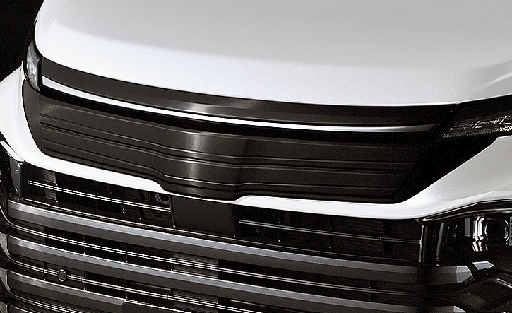 美しく洗練されたスタイリッシュなデザインのadmiration(アドミレイション)のエアロパーツ。純正エンブレムの上からそのまま装着しマークレスデザインの引き締まった印象に仕上げる90ヴォクシー用フロントフェイスグリル。