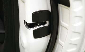 ドアのストライカー部分の隙間にスペーサーを入れ、隙間を埋めることで、ステアリングを操作した際の車両の応答遅れを低減し