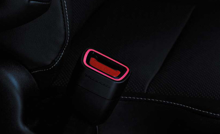 シートベルトのバックル部分を夜間も見やすくイルミネーション化。シートベルトの装着によってカラーがレッドからブルーに変わることで認識性も向上。点灯から15秒後には減光し、最適な明るさへと変化します。