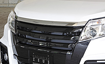 適度なボリュームとダクトLEDによってラグジュアリースタイルを与えるM'z SPEED(エムズスピード)のエアロパーツ。エクスクルーシブゼウス80ノア前期用フロントグリル。