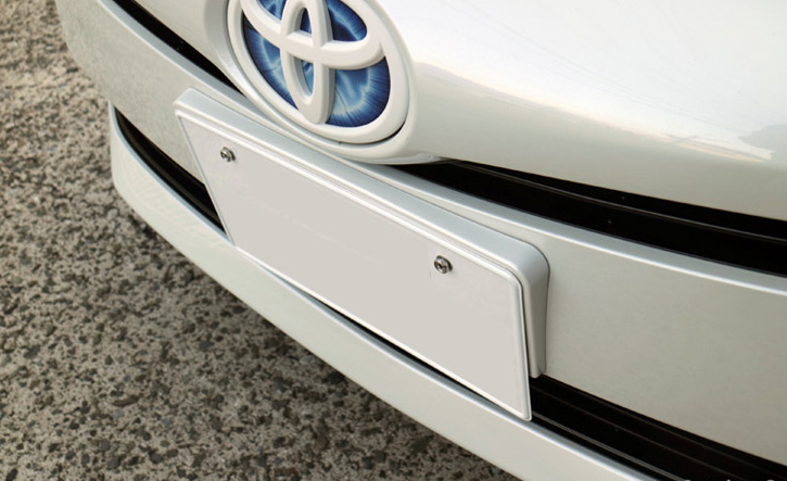 グラージオのエクステリアコーディネイト。標準ではボディカラーを問わず、黒い樹脂の素地が剥き出しとなっているナンバーベースを艶やかなボディ色で塗装を施した50プリウス前期用カラードナンバーベース。