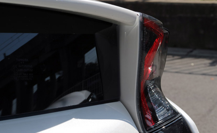 グラージオのエクステリアコーディネイト。標準ではボディカラーを問わず、黒い樹脂の素地が剥き出しとなっているテールランプ内側を艶やかなボディ色で塗装を施した50プリウス前期用カラードテールサイドパネル。