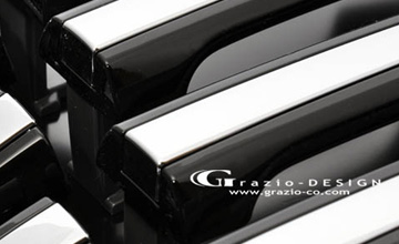 グラージオのエクステリアコーディネイト。タッチセンサーの機能をそのまま継承し、純正ではボディカラー単色の無機質なアウタードアハンドルを優雅な鏡面光沢のクロームメッキ・コンビ仕様へできる交換タイプドアハンドル。
