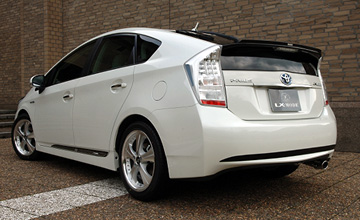 トヨタディーラー販売のエアロをプロデュースするLX-MODE(LXモード)、フロントフェイス中心のドレスアップを展開するバックアップデザインからリリースされるプリウス用エアロパーツ販売。さりげなく純正リアスポイラーをダックテール風に演出しスポーティー感を表現。