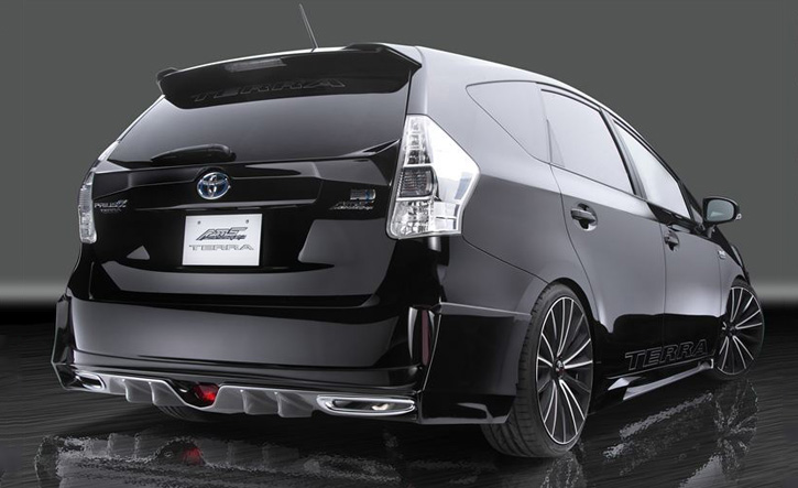 EVカーのためのAMSのエアロパーツブランド【TERRA】。完成されたスタイリングはそこに留まらず、燃費や走行安定性を目的とした空力性能まで熟考し生まれた機能デザインフォルムのエアロパーツ。プリウスα用リアハーフ。