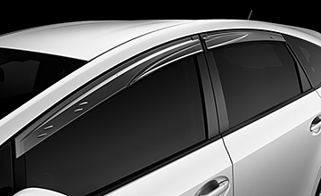 トヨタ車の代表パーツメーカー・TRDがリリースするプリウスα用サイドバイザー。先端と後端のエアロスタビライジングフィンによって整流効果を発揮し、操縦安定性に貢献します。