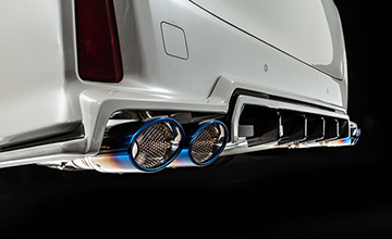 左右4本出しオーバルデュアルが最上級なパフォーマンスを与え、リヤビューを魅力的に演出します。機能は排気効率や地上高の実用性を徹底的に拘り、メインパイプ径とサブパイプ径を変え、独自レイアウト&小径サイレンサーを採用し設計された究極のマフラー。