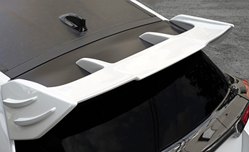 ボディ後端・トランク後端上部に装着するエアロパーツです。小型のものをトランクスポイラーと呼び、多少の大きさがある場合はリアウイングと呼ぶ場合もあります。