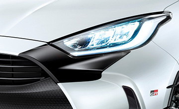 トヨタ車の代表パーツメーカー・TRDがリリースするエクステリアパーツ・エアロパーツ。ヘッドライトラインをブラックアウトして精悍なルックスにするヤリス用フロントバンパーガーニッシュ。